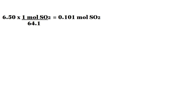 So we have worked out that there are 0.101 moles (rounded to 3 significant figures) of sulphur dioxide molecules in 6.50 g of sulphur dioxide.