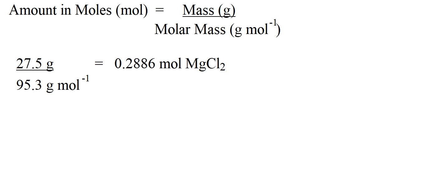 Step 4: Work out the amount in moles of magnesium chloride using the following formula.