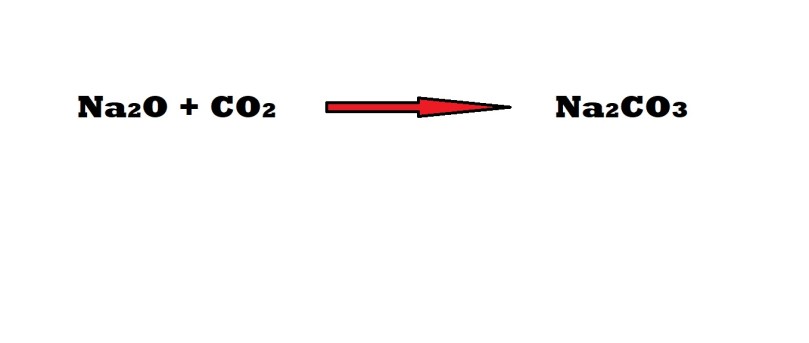 A reaction between sodium oxide and carbon dioxide produces sodium carbonate.
