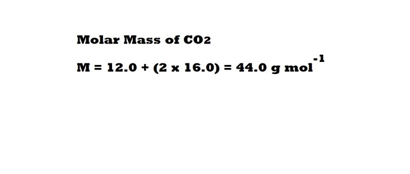 Step 2: Calculate the molar mass of carbon dioxide. We need to know this in order to work out how many moles of carbon dioxide are involved as a reactant using the known mass.