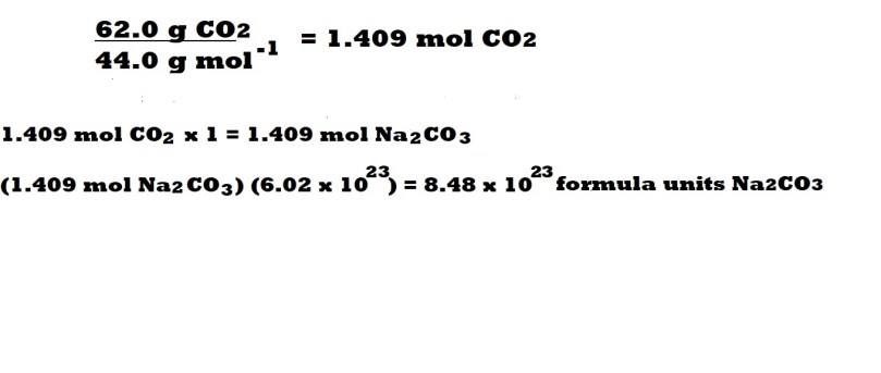 How many formula units of sodium carbonate are produced from 62.0 grams of carbon dioxide?